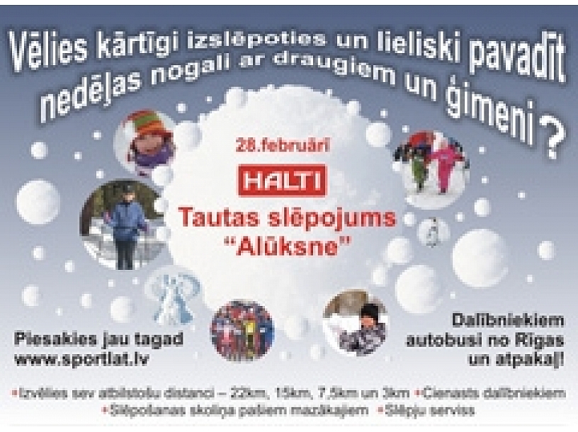 Februāra mēneša nogalē, 28. februārī norisināsies HALTI tautas slēpojums "Alūksne" uz kuru tiek aicināti visi aktīva un veselīga dzīvesveida entuziasti, kas alkst šī gada skaisto ziemu izbaudīt. Organizatori garantē aizraujošus izaicinājumus, sacensību azartu un pozitīva atmosfēru!